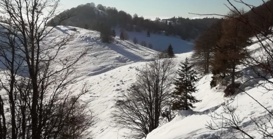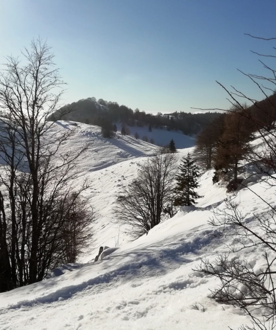 Prealpi Cansiglio Hiking vi accompagna in una ciaspolata lungo i sentieri alla base del Monte Saùc e la strada panoramica della Dorsale fiulana, verso Casera Val Friz.